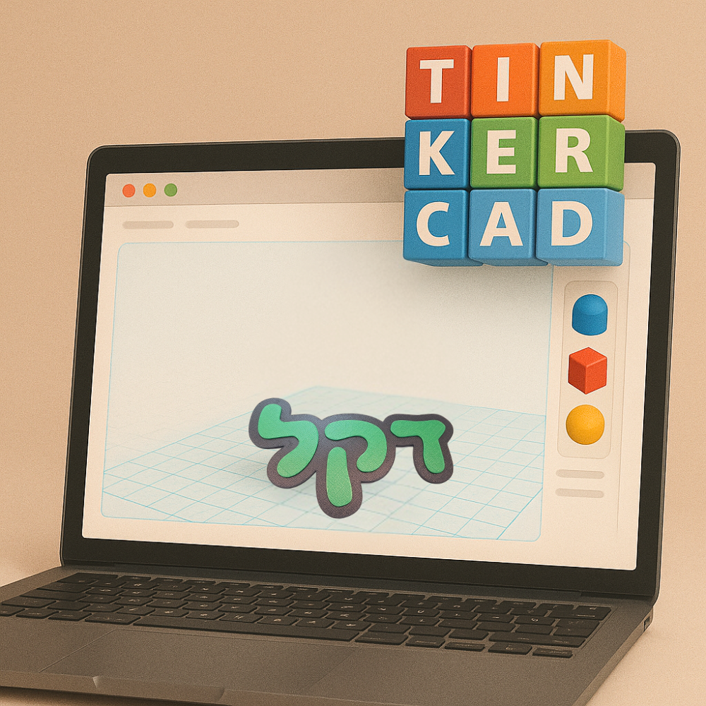 שיעור מובנה במידול והדפסת תלת מימד – שיעור מעשי יחיד מהתחלה ועד מודל מודפס של שלט לדלת חדר ילדים בצורת שם באמצעות תוכנת טינקרקאד