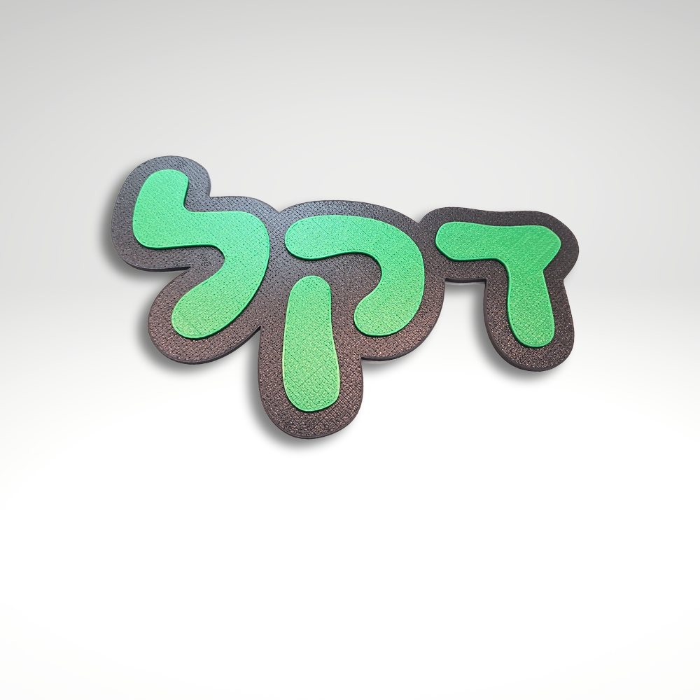- קבצים להורדה: קובץ STL מוכן להדפסה של שלט עם שם לדוגמא.