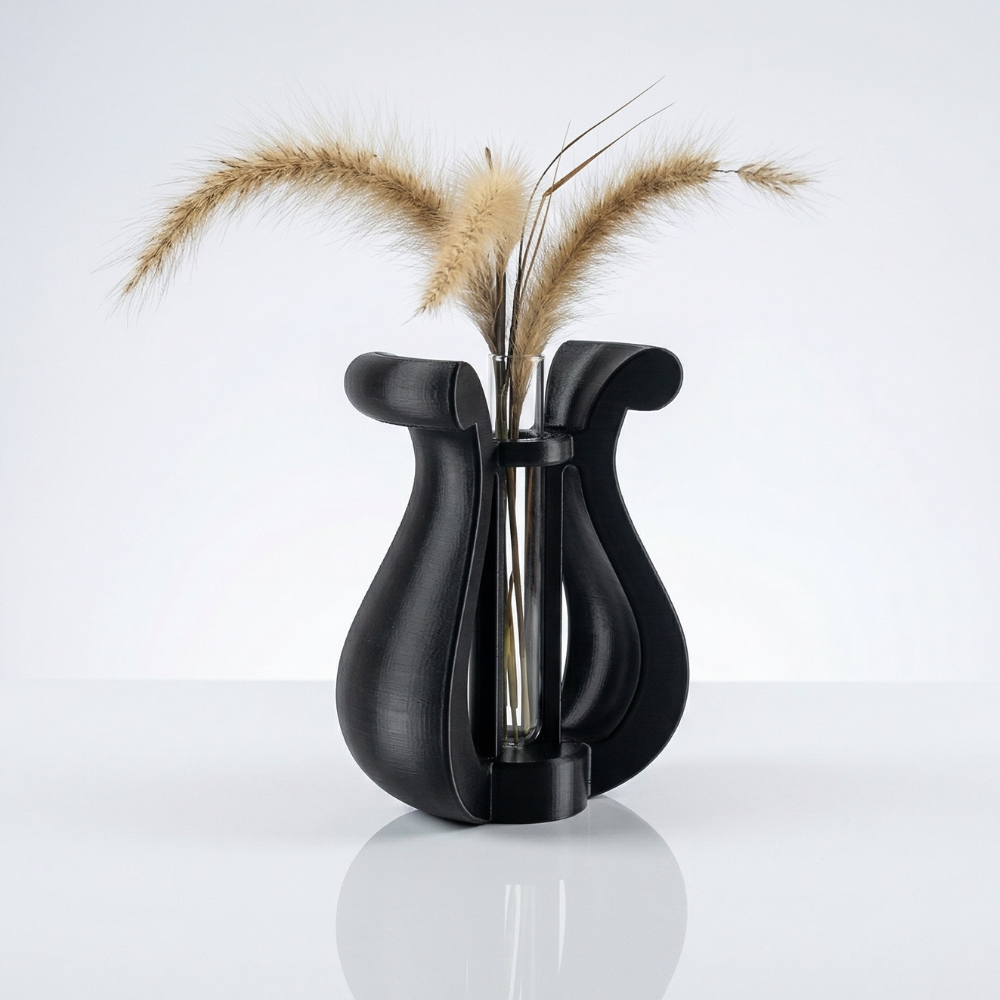 זהו אלמנט דקורטיבי מעוצב, קל משקל, המיוצר בהדפסת תלת מימד, עשוי מפלסטיק איכותי, ומשלב בתוכו מבחנת זכוכית אלגנטית המתאימה לענפי נוי, פרחים יבשים או צמחייה עדינה.